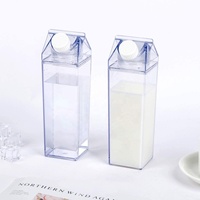 Sveglio di modo di sport cartone di latte forma di scatola quadrata bambini di plastica portatile bere latte trasparente bottiglia di acqua