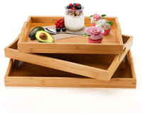 3 упаковки, бамбуковый поднос с ручками, подносы для еды, для кофе, завтрака, ужина, чая, прямоугольный деревянный декоративный поднос
